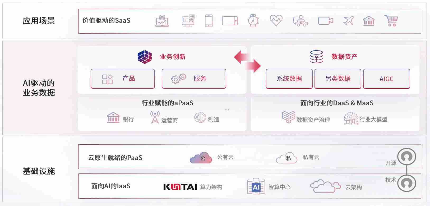 数字时代,,围绕企业数字化转型的关键要素,,z6mg人生就是博数码开创性的提出数云融合战略和技术体系框架,,,着力在云原生、、数字原生、、、、AI原生和信创产业上架构产品和服务能力,,为处在不同数字化转型阶段的快消零售、、汽车、、、、金融、、、、医疗、、、、政企、、教育、、运营商等行业客户提供泛在的敏捷IT能力和融合的数据驱动能力,,,构建跨界融合创新的数字业务场景和新业务模式,,,助力企业级客户建立面向未来的核心能力和竞争优势,,,全面推动社会的数字化、、、、智能化转型升级。。。